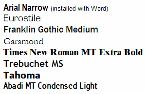 If you are having problems with truncated or displaced letters, please use one of these or similar fonts.